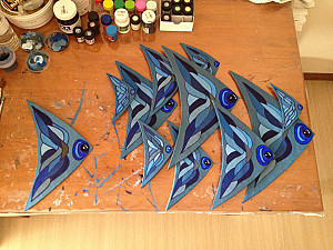 First paper maché/ recycled materials I made when starting in early 2013. Still hanging on the wall of my studio room. Something I will keep forever.